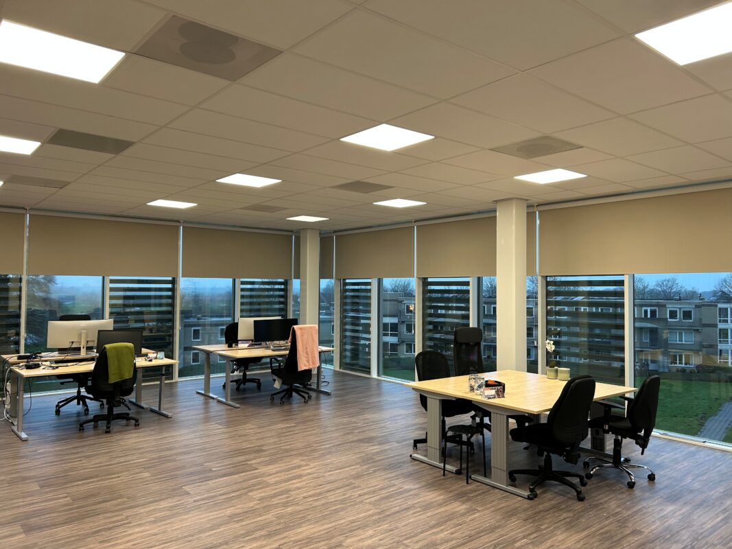 Verdeeld over 3 etages hebben we grote ruimtes voor meerdere werkplekken of ontvangst van klanten. Maak indruk met de hoogwaardige uitstraling van het Maxima Centrum en het prachtige groene uitzicht.